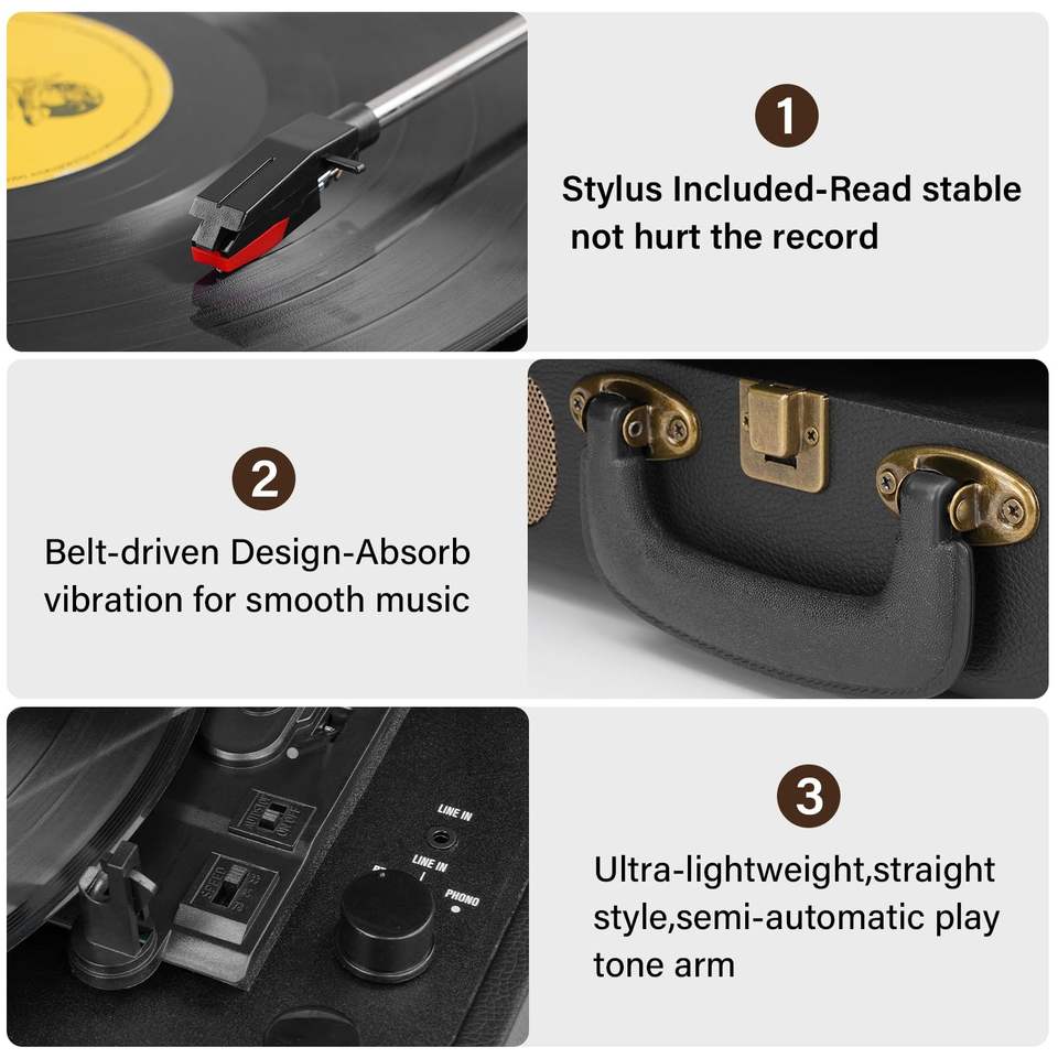 Tourne-disque vinyle 3 vitesses à prix d'usine, lecteur de disques à entraînement par courroie Bluetooth, phonographe LP sans fil d'entrée de gamme pour les boutiques en ligne