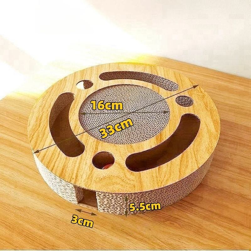 Jouet interactif 3-en-1 pour chat, forme ronde, griffoir avec piste de billes en bois, style classique de Noël en carton – Prix usine
