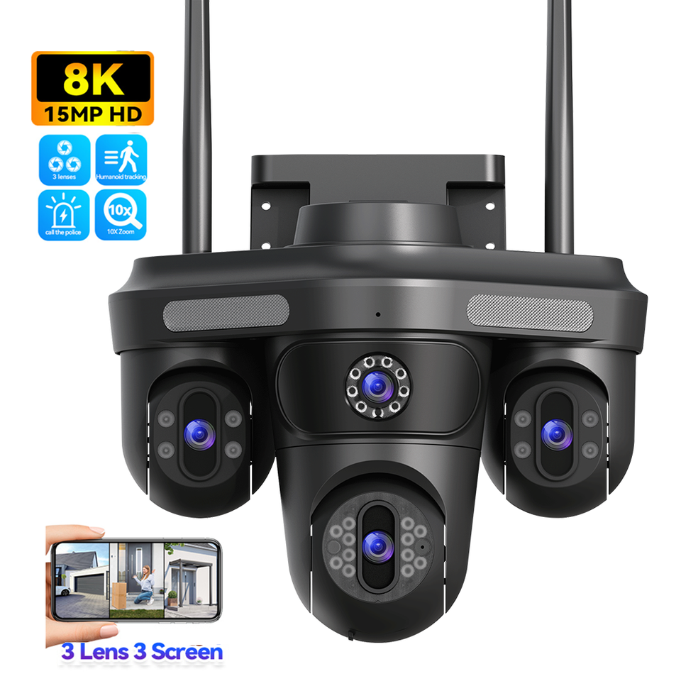 Caméra de sécurité wifi à 4 objectifs et 3 écrans