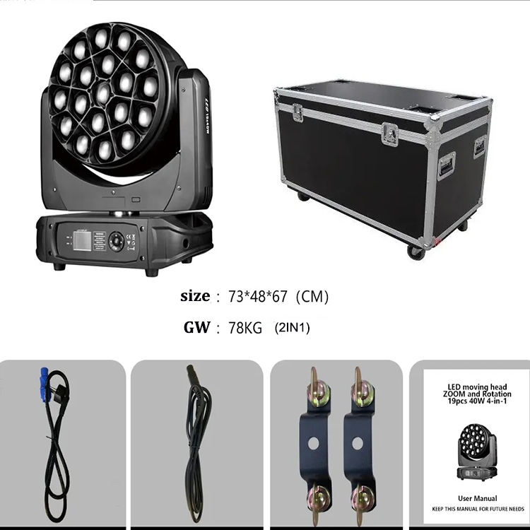 Source de lumière:19pcs 40W RGBW 4 in1 LED perles, contrôle unique
