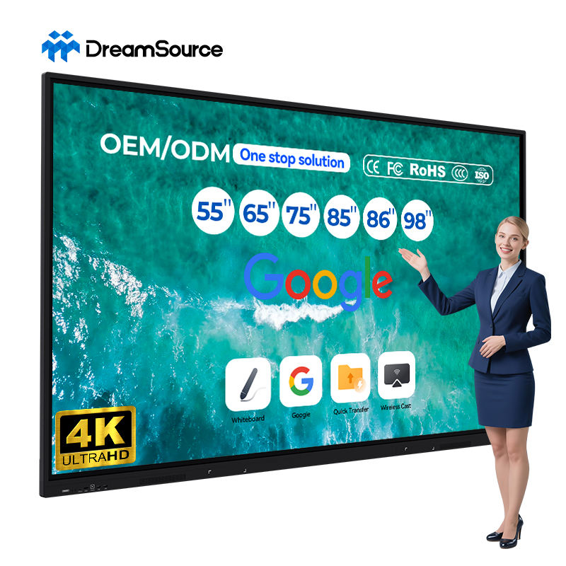 Tableau interactif intelligent à écran tactile Android/Windows 4K de 55 à 115 pouces, prix usine, avec fonction tactile 20-40 points et caméra 48MP
