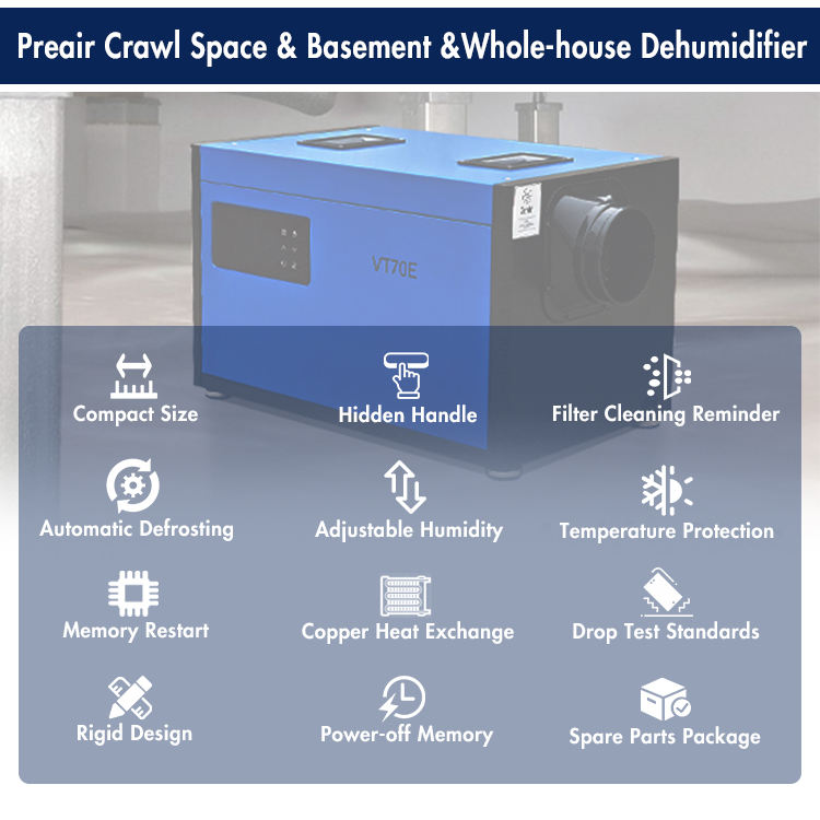 Déshumidificateur domestique commercial 70 pintes 115V R32 pour toute la maison et les sous-sols, prix d'usine