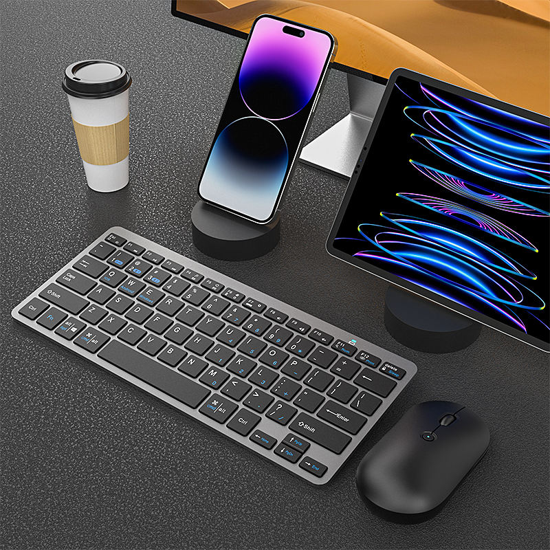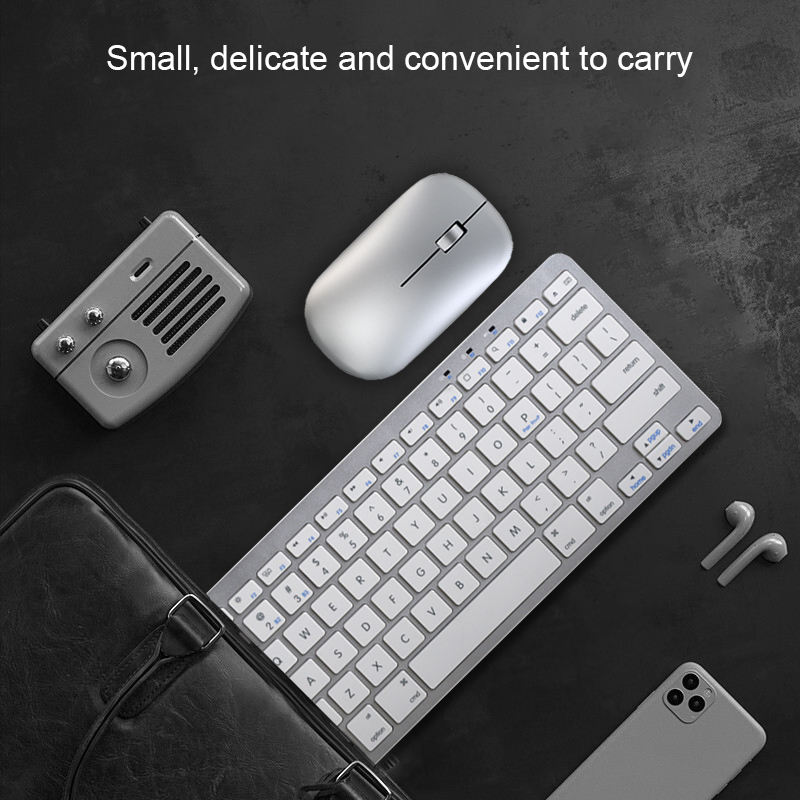 Prix d'Usine Combo Mini Clavier et Souris Sans Fil 78 Touches Rechargeables Bluetooth pour Ordinateur Portable, Tablette et PC