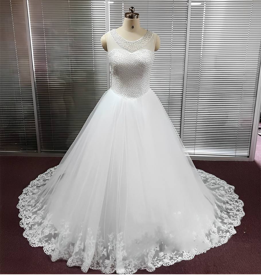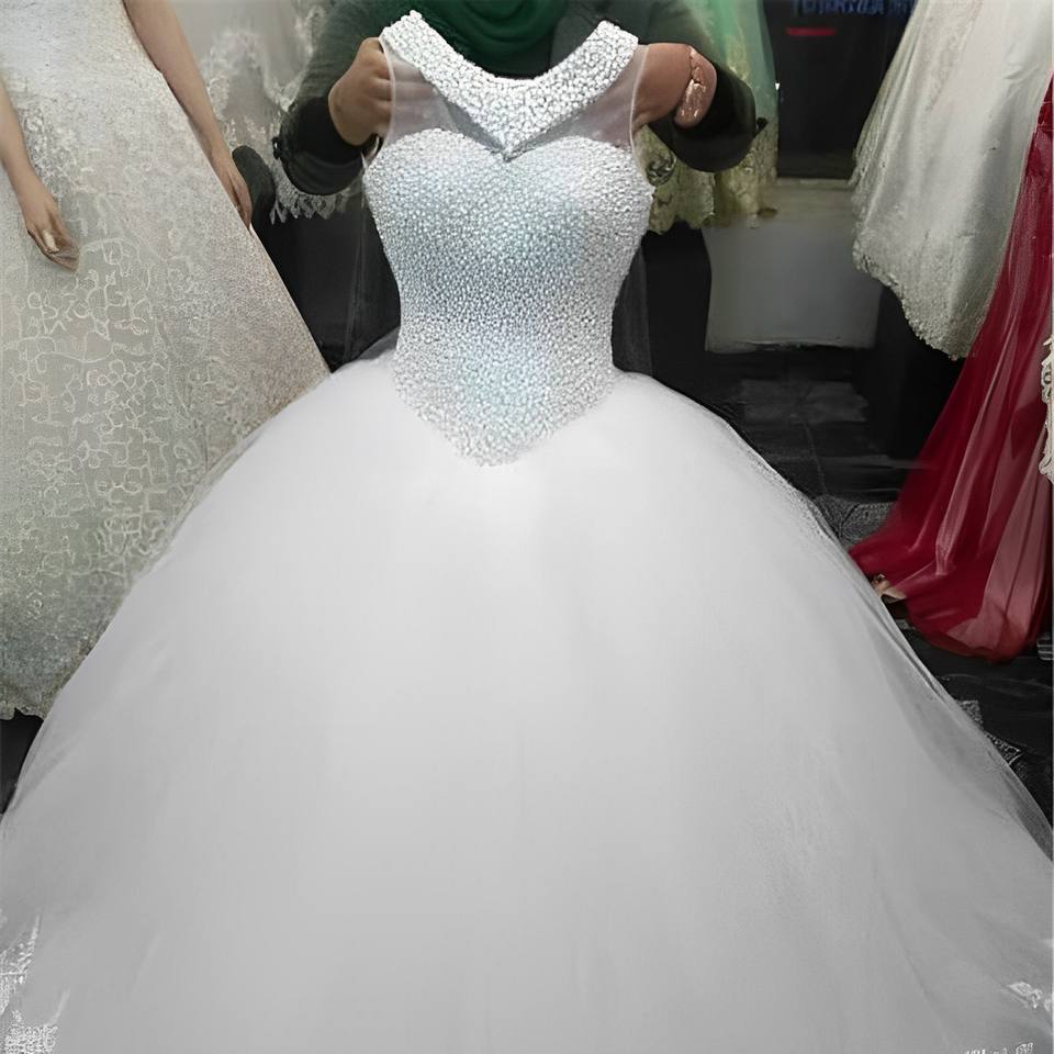 Nom du produit:Dentelle de luxe strass robes de mariée de broderie sans manches