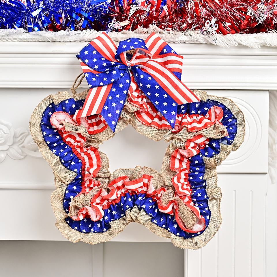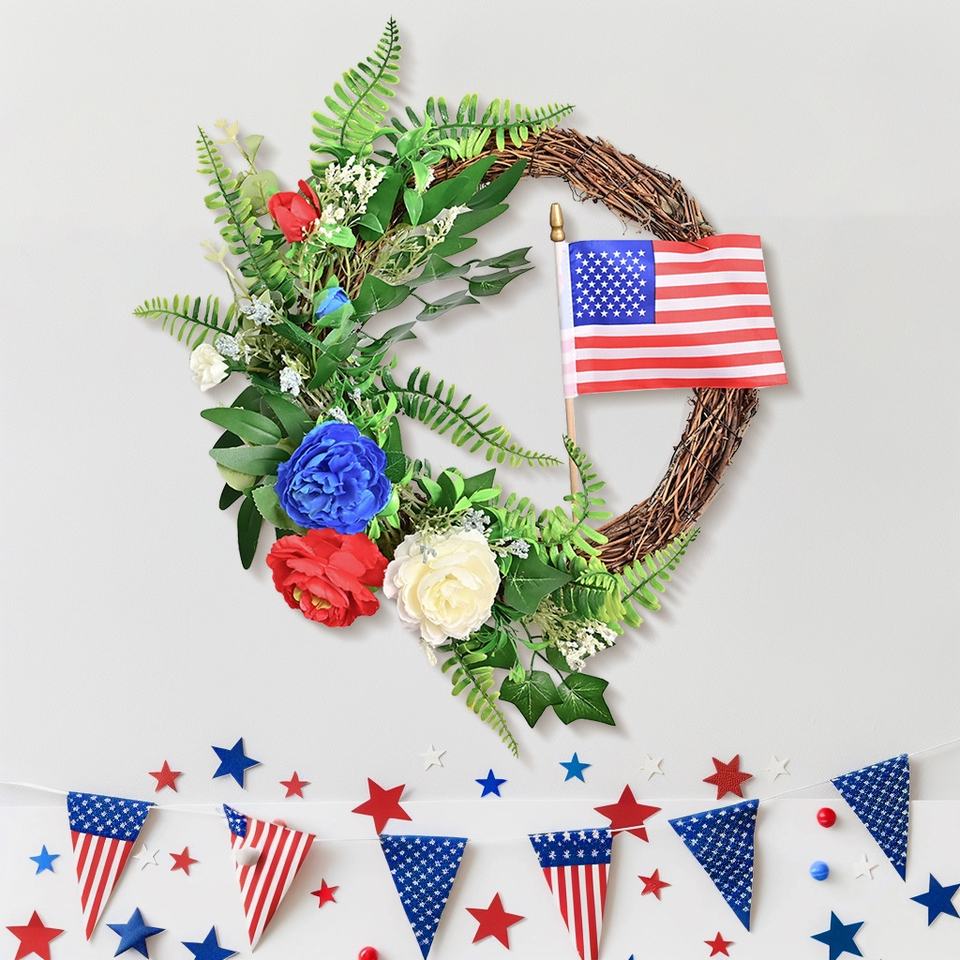 Factory Price American Independence Day Door Hanging Decorations Red Blue White Vine Wreath Festival Party Garland