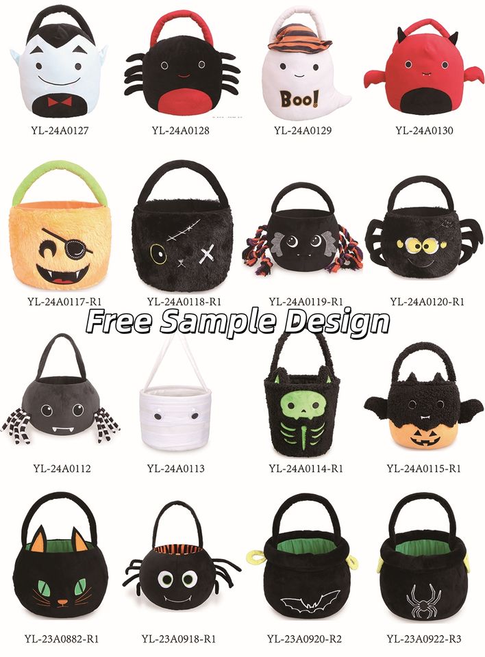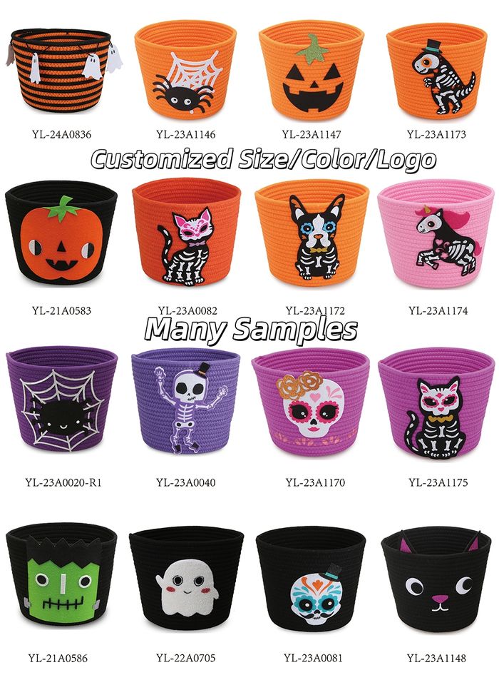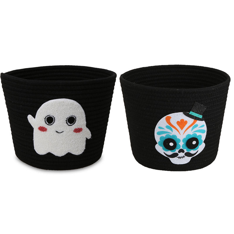 Panier de rangement d'Halloween noir à prix d'usine, motif fantôme et squelette, décoration de vacances pour enfants, cadeau de bonbons, tissu moderne