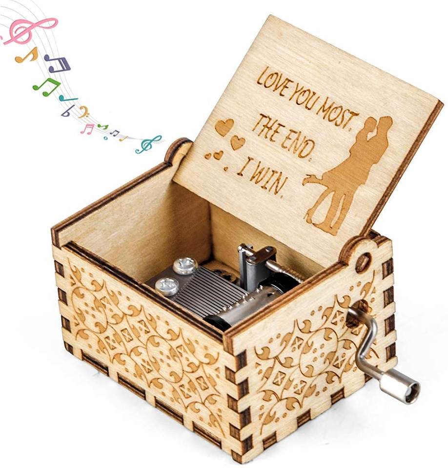 Prix usine en vrac petite sculpture au laser personnalisée en bois Harry Movie Potter boîte à musique à manivelle pour cadeaux d'anniversaire