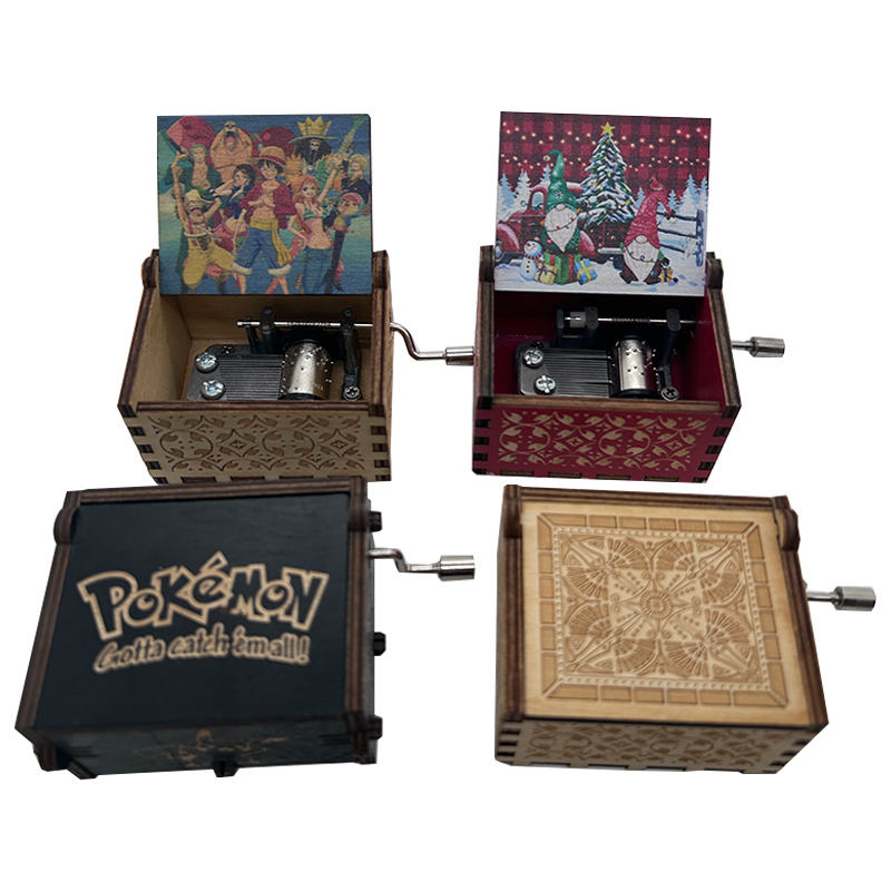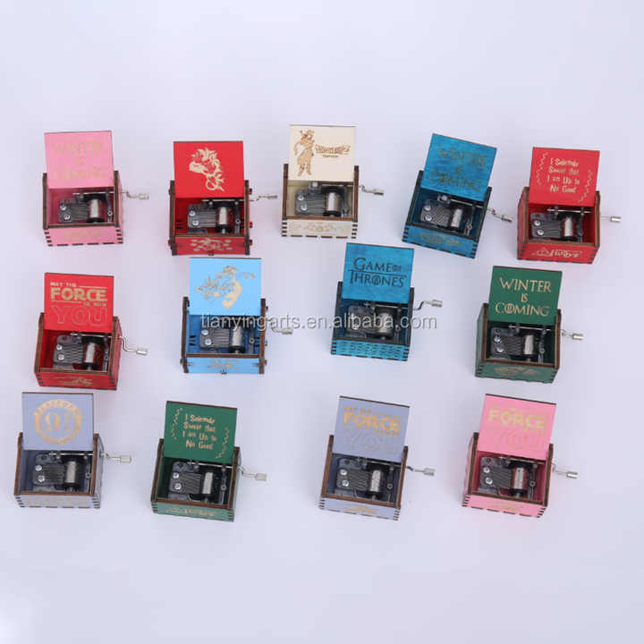 Prix usine en vrac petite sculpture au laser personnalisée en bois Harry Movie Potter boîte à musique à manivelle pour cadeaux d'anniversaire