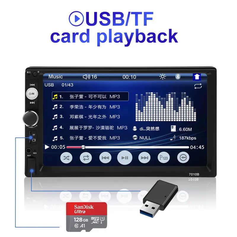 Prix usine voiture stéréo voiture lecteur Mp5 2 Din 7 "écran tactile Bt Usb Fm Aux 7010b 7018b 7023 avec caméra de recul