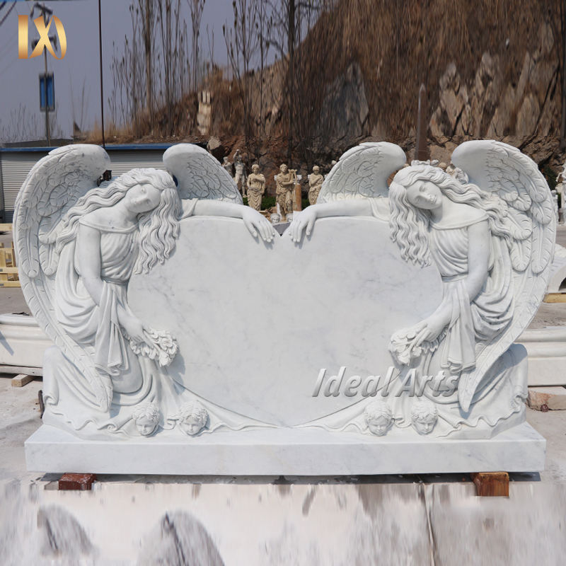 Statue d'ange gardien de marbre blanc, prix usine, pilier avec cœur pour statue