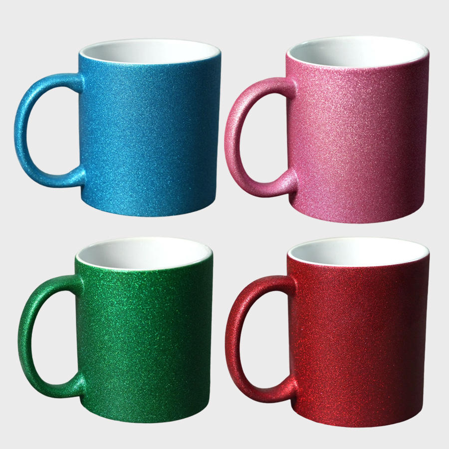 Prix usine coloré changeant tasse en céramique 11 oz blanc Sublimation coeur rouge poignée ronde paillettes tasse magique