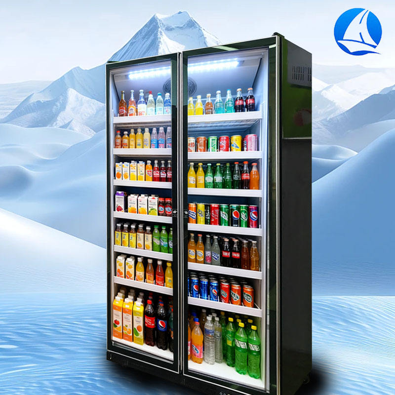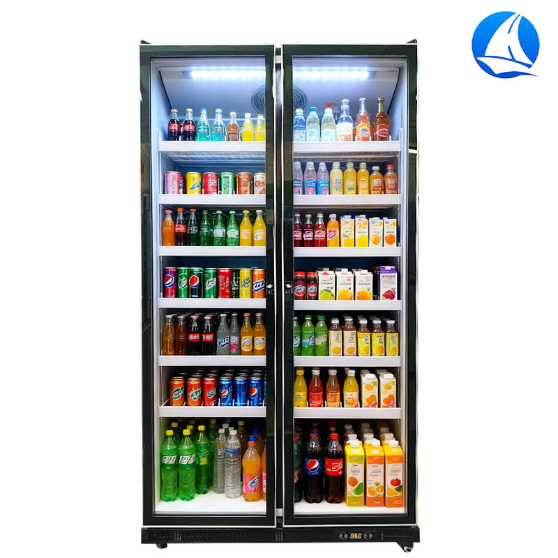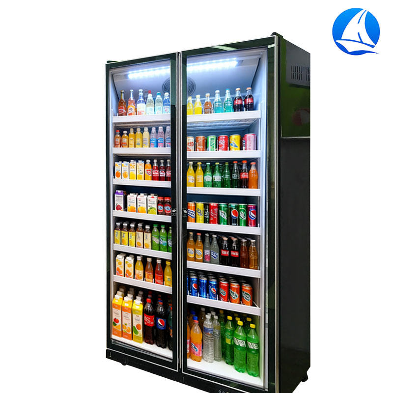 Réfrigérateur commercial à prix d'usine, congélateur vertical à deux/trois portes vitrées, affichage numérique de la température, écoénergétique
