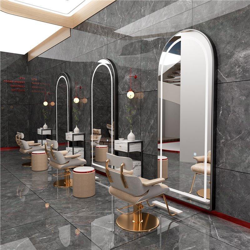 Miroir de salon de coiffure ovale carré moderne de luxe léger avec éclairage LED, prix d'usine, design personnalisé