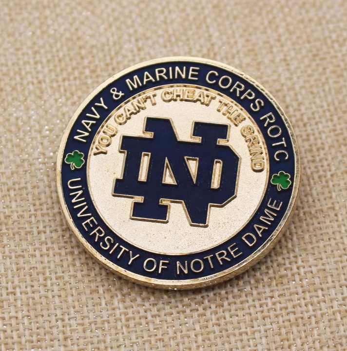 Pièce commémorative d'anniversaire scolaire en émail doré personnalisée au prix d'usine, pièce commémorative de l'Université de Notre-Dame
