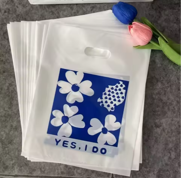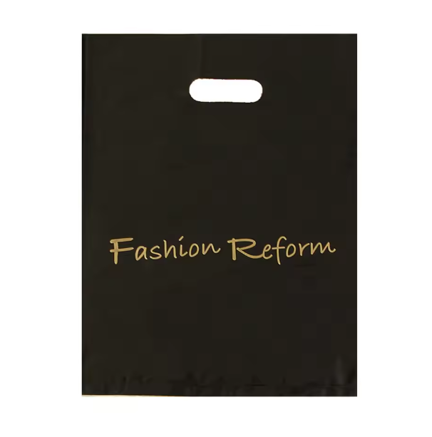 Sac en plastique imprimé avec logo personnalisé, prix d'usine, épaisseur 0,1 mm, poignée découpée pour le shopping