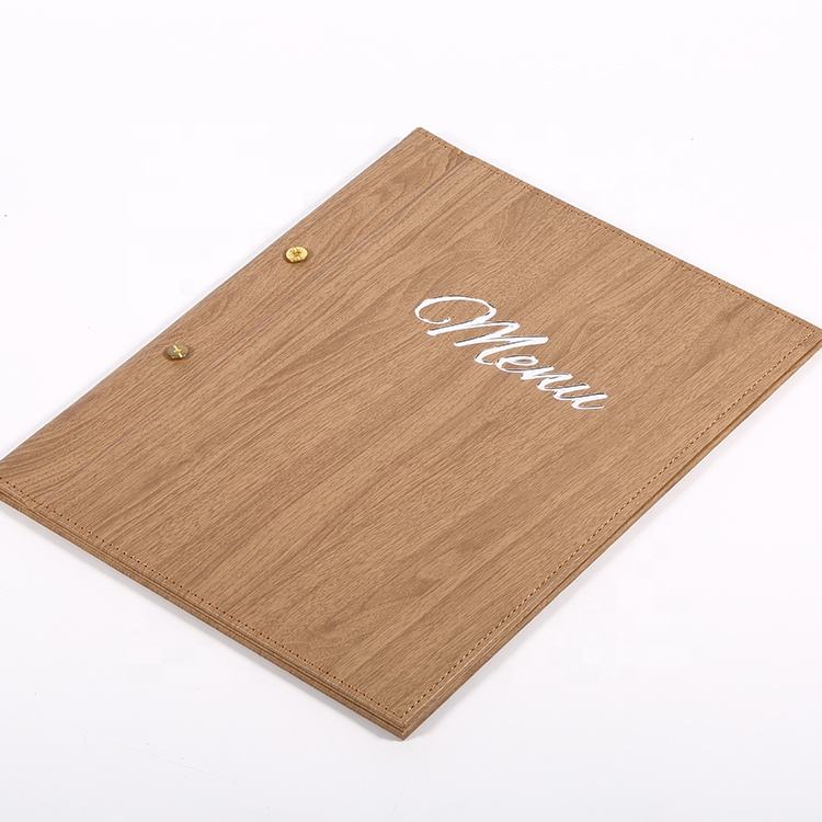 Prix d'usine, menu personnalisé, couverture de menu en simili cuir avec reliure extérieure par vis, dossier de menu A4