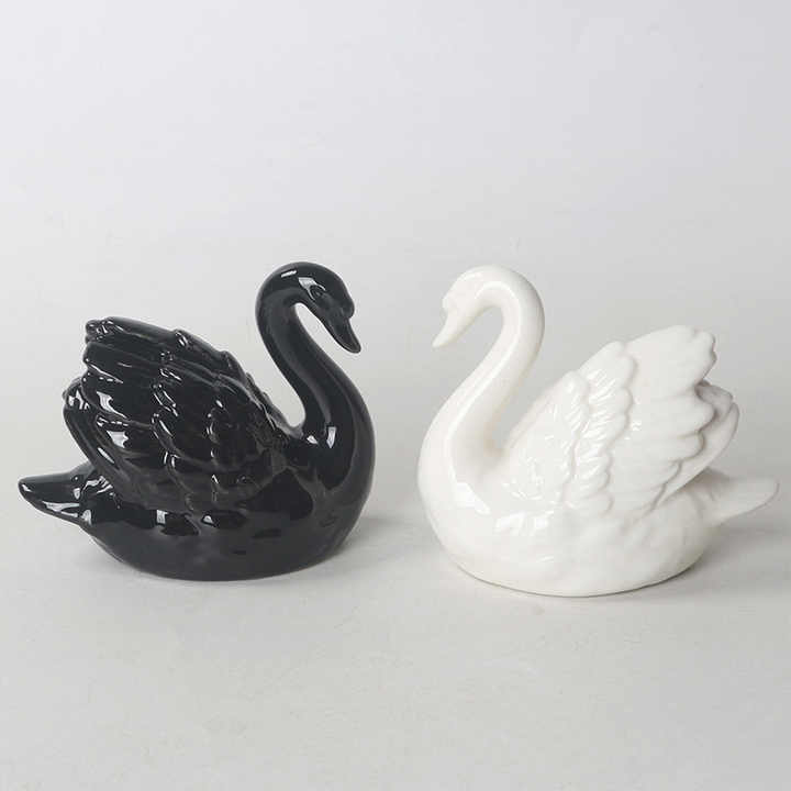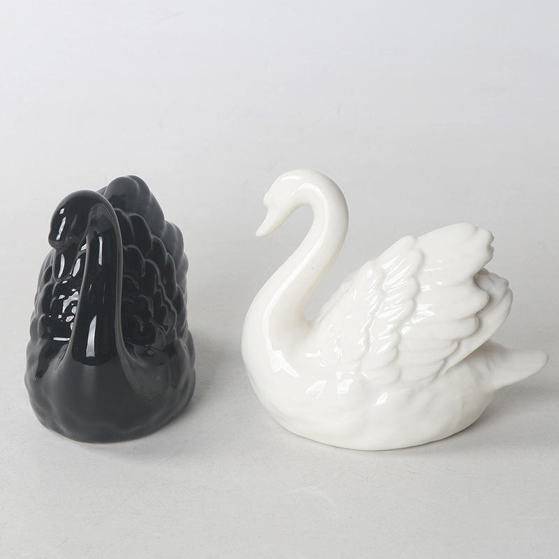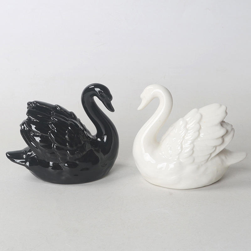 Prix usine personnalisé moderne minimaliste noir et blanc céramique artisanat cygne ornements décoration Figurine