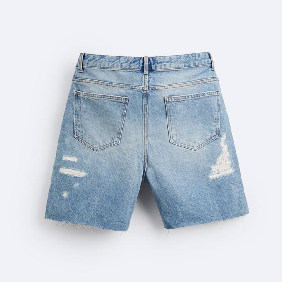 Shorts en jean déchirés pour hommes, nouveau design, délavage bleu, logo personnalisé, prix d'usine