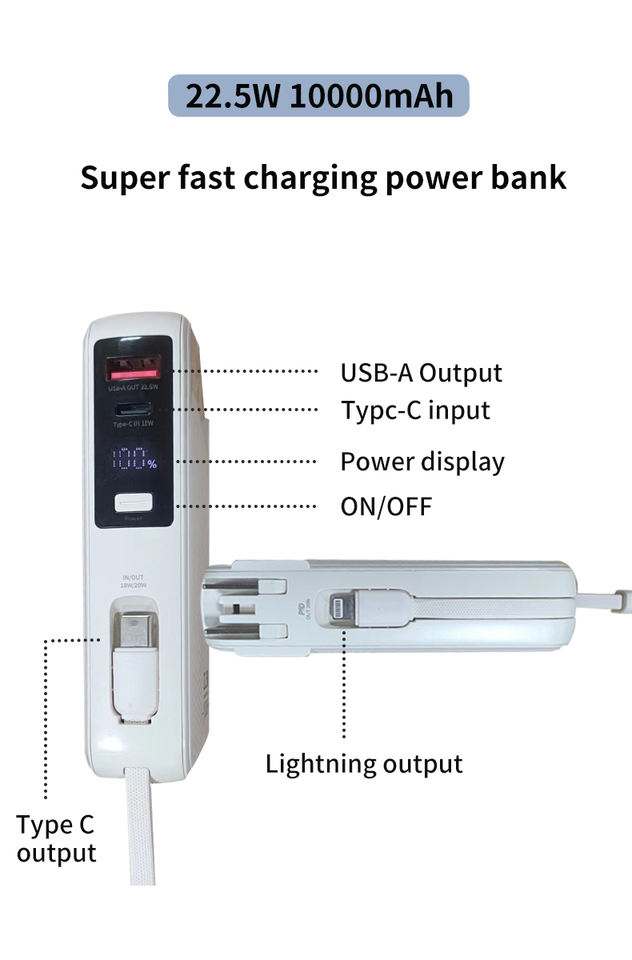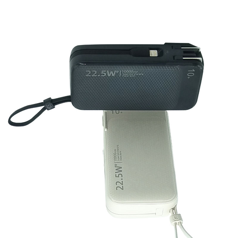 Batterie externe portable haute capacité 22,5 W 10000 mAh avec câble intégré et protection, prix usine, personnalisable pour iPhone