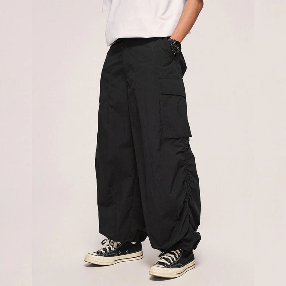 Pantalon parachute homme en nylon avec poches cargo et taille élastique