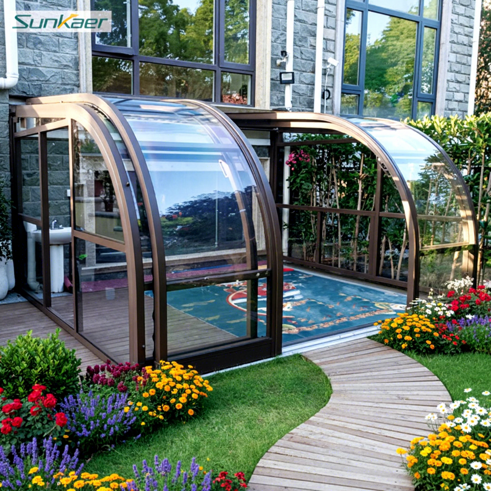Prix d'usine, conception populaire personnalisée, enclos de patio en polycarbonate, couvertures de terrasse en PVC, vérandas, maisons en verre