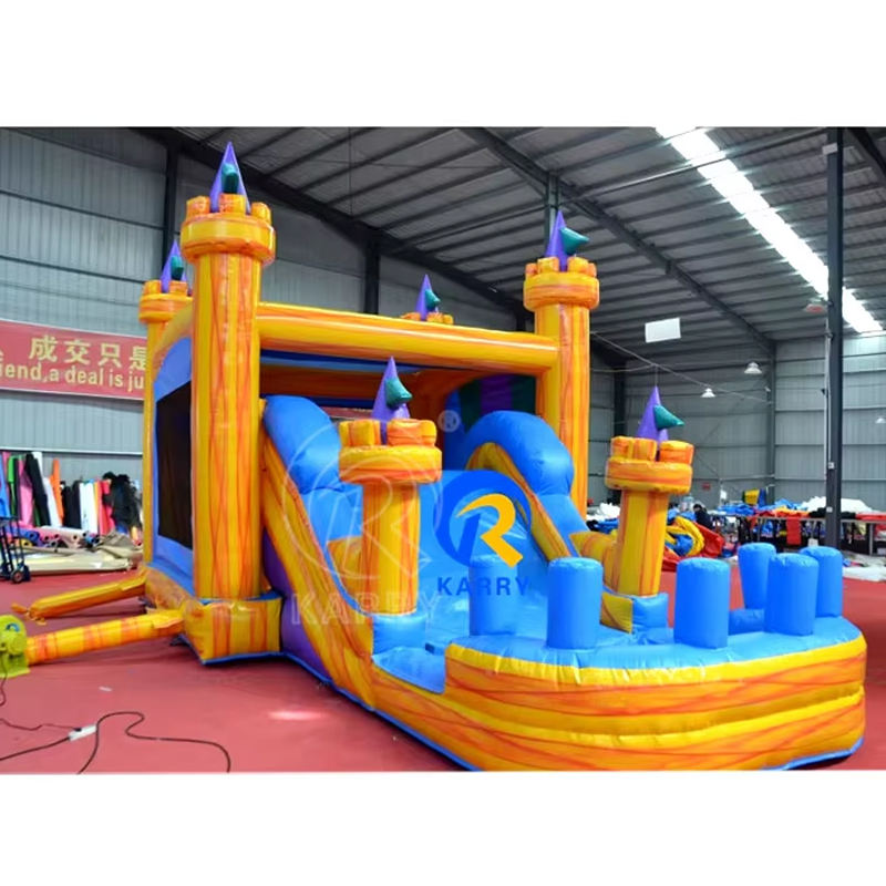 Château gonflable gonflable en marbre jaune coloré avec toboggan