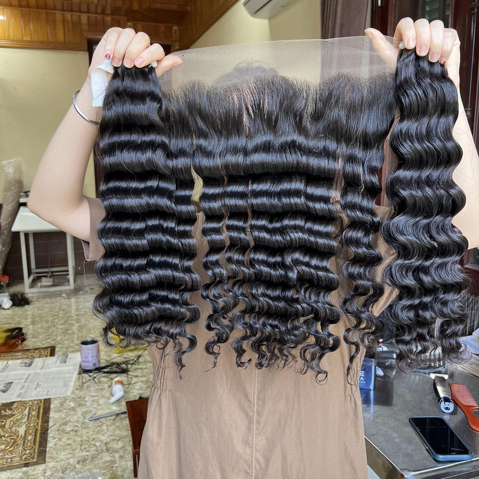 Prix usine vague profonde, vague d'eau 100% cheveux humains vietnamiens, couleur noire naturelle, peut être teint toutes les couleurs, longueur 6-36 pouces