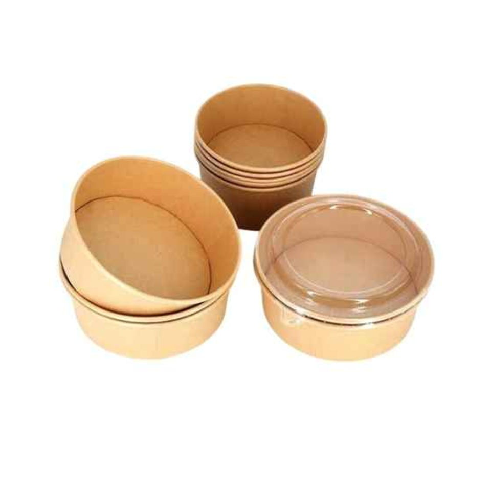 Bol à salade jetable en papier kraft, prix d'usine, forme ronde, réutilisable, qualité alimentaire