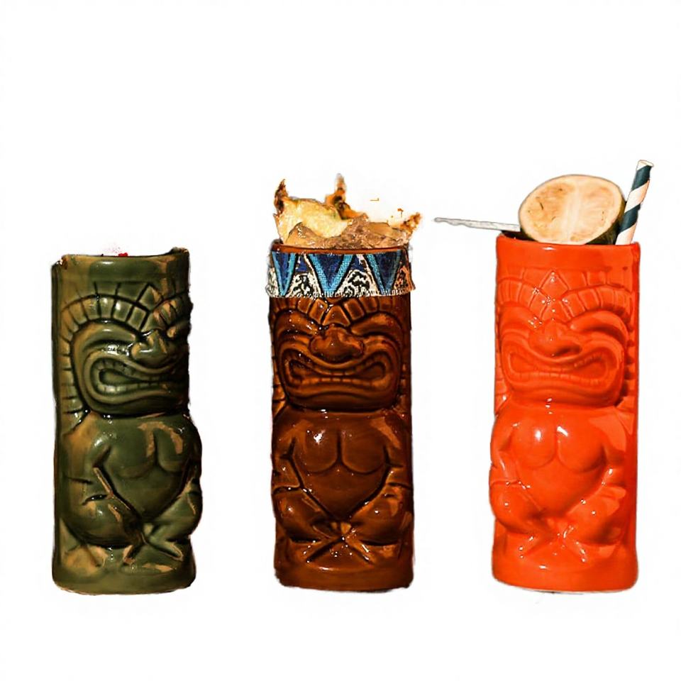 Prix d'usine Cadeaux d'affaires de luxe modernes écologiques 401-500ml Statue Grimace Tiki Hawaï Motif Marbre Poignée Céramique