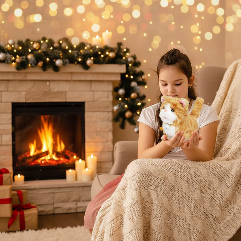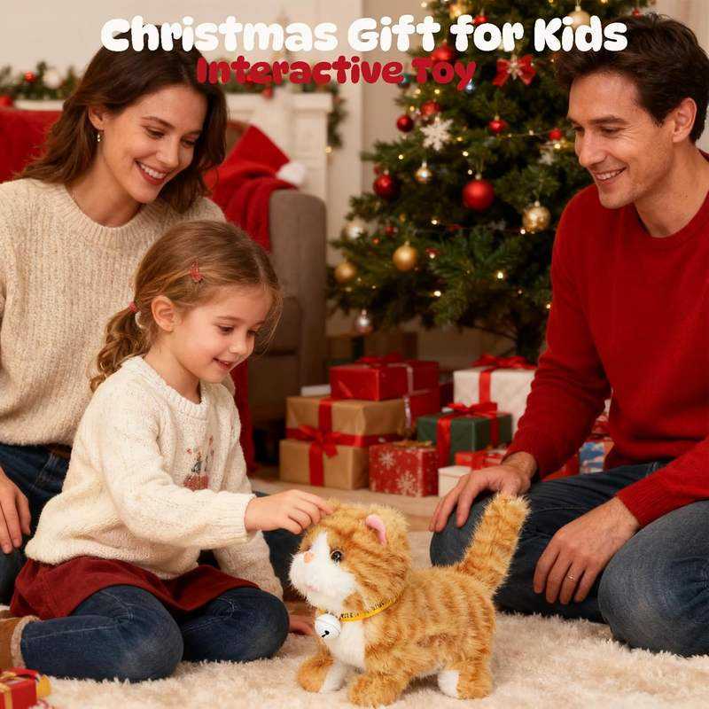 Jouet en peluche interactif pour chat, brodé, motif chat tigré orange, avec collier à clochette, super doux, en coton PP, oreilles mobiles, sûr pour les enfants, anti-stress, prix d'usine
