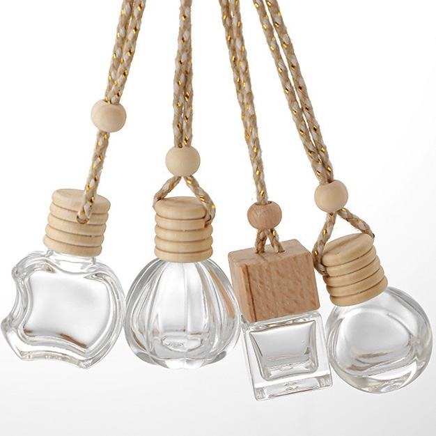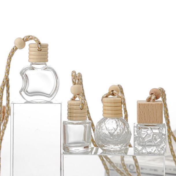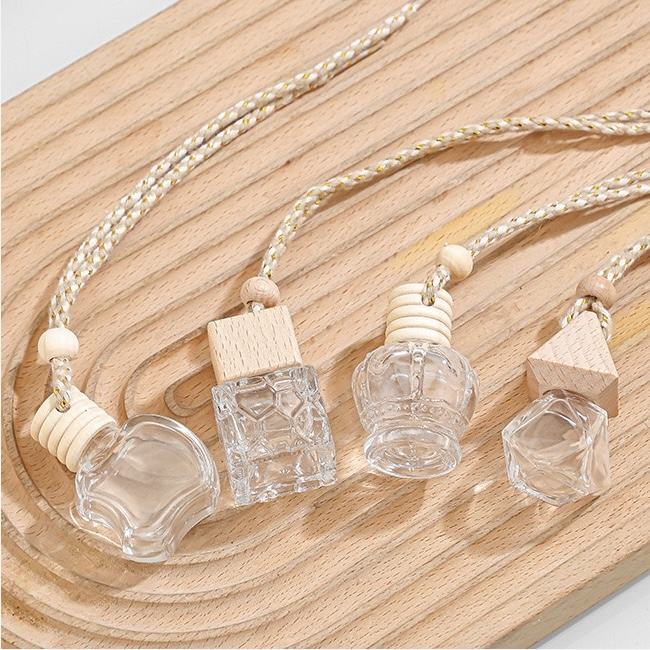 Prix usine vide 5ml/8ml/10ml verre suspendu diffuseur bouteilles voiture désodorisant bouteilles de parfum avec couvercles en bois
