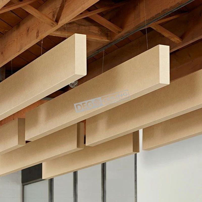 Panneaux acoustiques en laine de verre à prix d'usine, design à faux baffles pour la décoration de halls et de magasins, installation verticale pour espaces ouverts