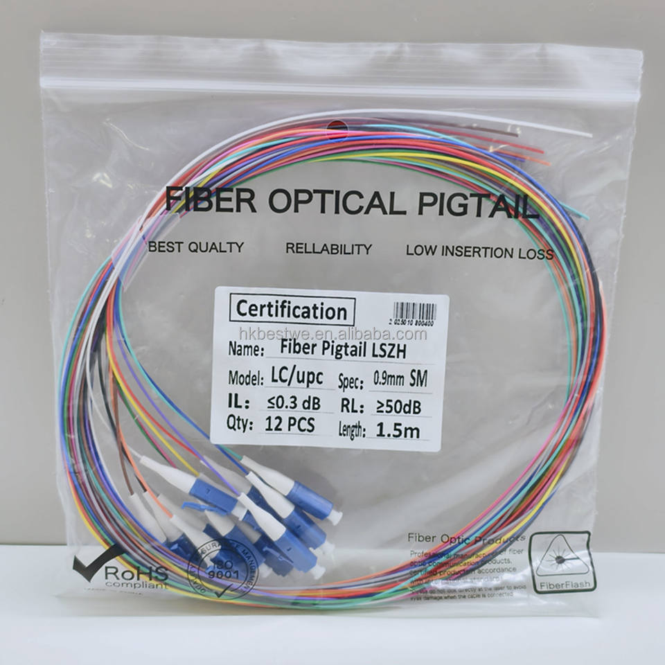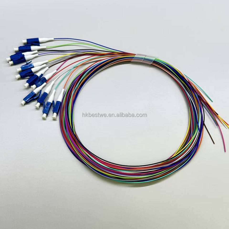 Prix usine Câbles à fibres optiques FTTH 12 fibres, connecteurs LC/UPC à tête carrée, Pigtails optiques LC