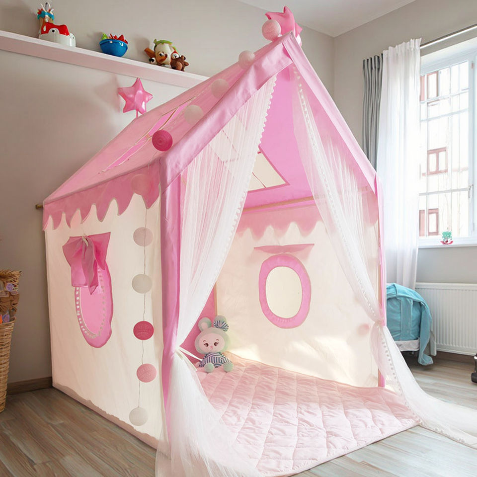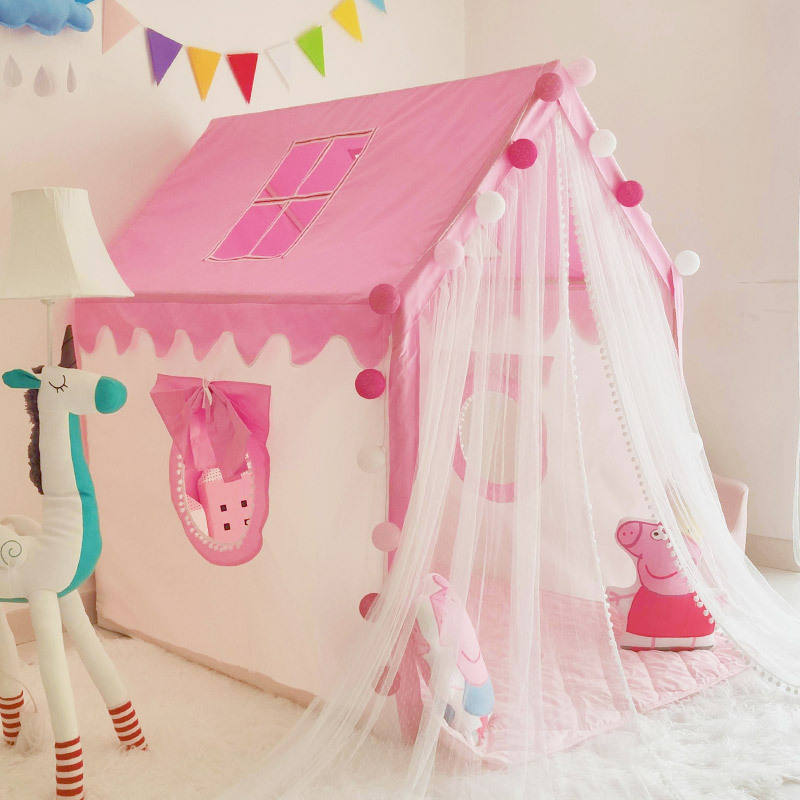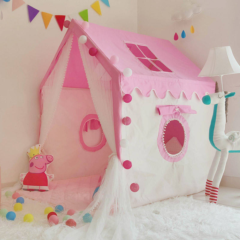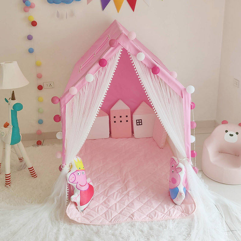 Factory Price Foldable Indoor Children Bedroom Playhouse Toy Princess Teepee Shape Kids Castle Tent