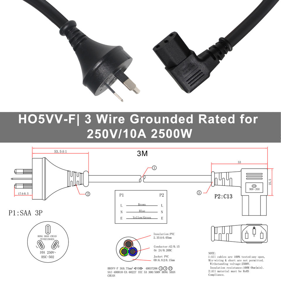 Factory Price Free Samples 1.2m ODM OEM IEC Right Angle C13 Power Cable 3 Pin Electric Plug AU Power Cord for Computer