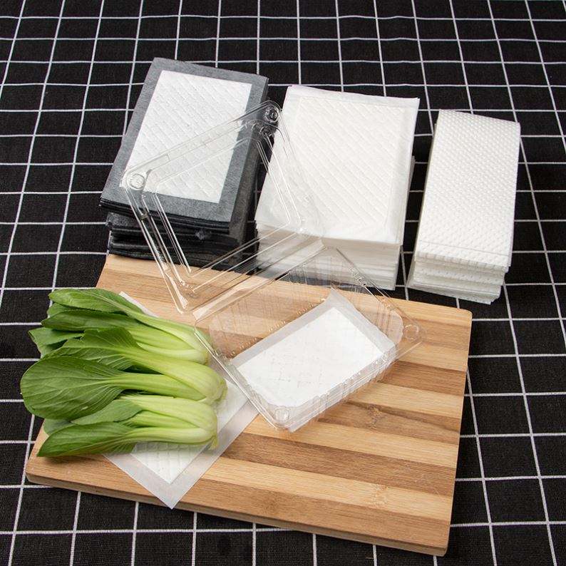 Prix d'usine Tampons absorbants frais pour viande, fraise, cerise, tomate, 40 ml/unité, noir/blanc, pour emballage absorbant de viande