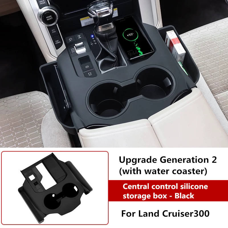 Prix d'usine, accessoires de voiture de haute qualité, boîte de rangement centrale en silicone avec porte-gobelet pour Toyota Land Cruiser 300