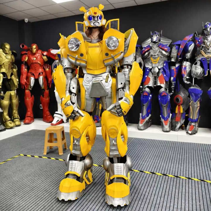 Costume de cosplay de Noël/Halloween unisexe pour adulte, robot transformateur jaune LED de haute qualité, prix d'usine