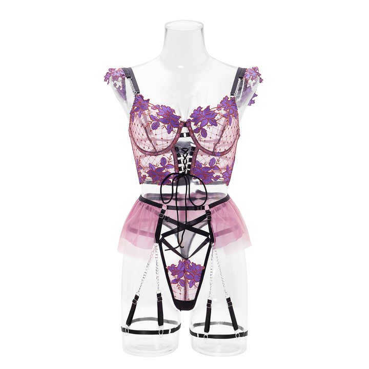 Prix usine haute qualité bas quantité minimale de commande Sexy Lingerie maille jarretière femmes mince brodé soutien-gorge ensemble
