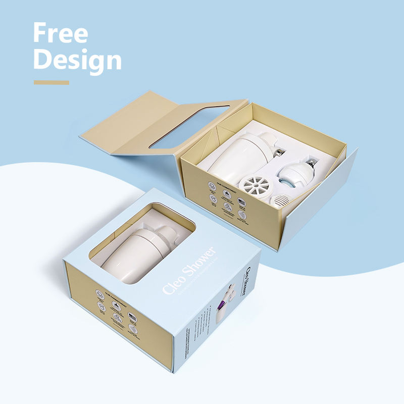 Boîtes rigides de haute qualité à prix d'usine pour purificateur d'eau électronique domestique, boîtes pliantes avec insert en EVA, finition mate et fenêtre en PVC