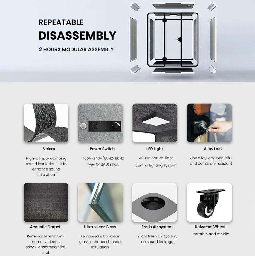 Prix d'usine, cabine insonorisée de haute qualité pour salle de réunion, bureau, espace de travail, cabine acoustique pour réunions