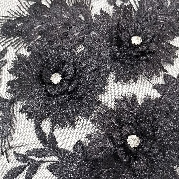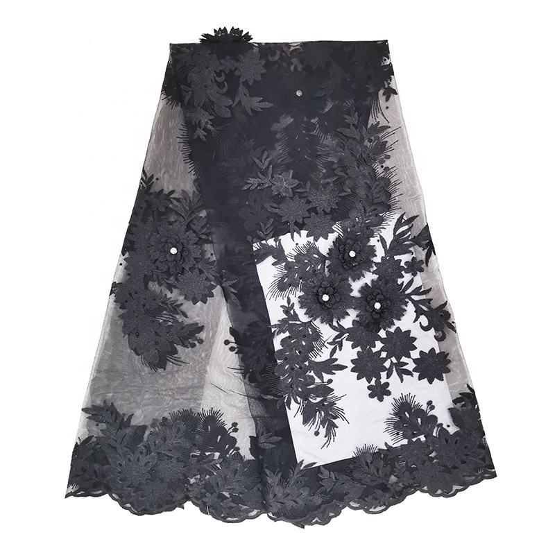 Tissu brodé en tulle noir à dentelle guipure aso ebi, robe de haute qualité, prix d'usine, nouvelle collection