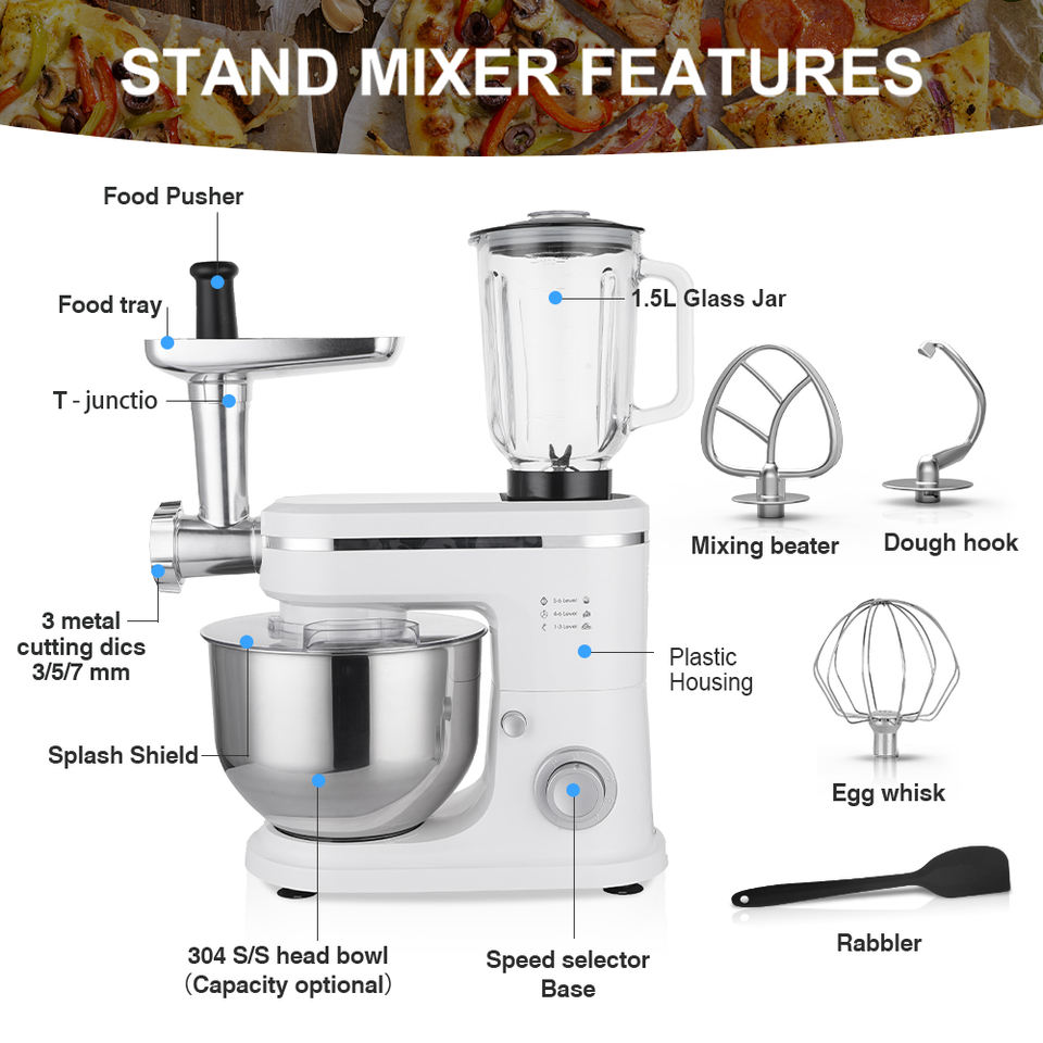 Accessoires:Crochet pétrisseur, Batteur plat, Bol de mélange, Fil-fouet