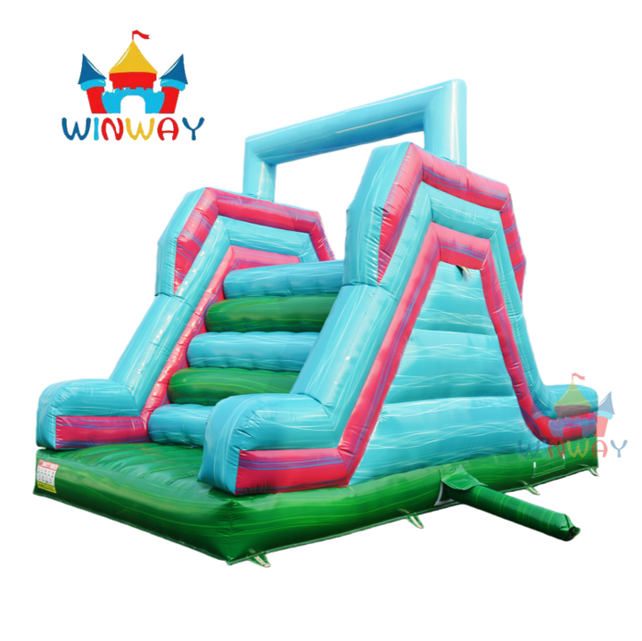 Prix d'usine, toboggan gonflable irisé, combinaison d'échelle d'escalade et de toboggan sec, ensemble de toboggan d'escalade bleu vert, jeu pour enfants pour location de fête