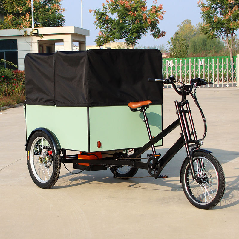 Vélo de livraison à trois roues à chargement arrière longue portée au prix d'usine, avec boîte, tricycle électrique, vélo cargo pour la livraison avec auvent