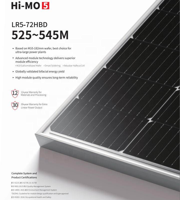 Panneaux solaires bifaciaux Longi Hi MO 5 550W à prix d'usine, demi-cellules 555W 535W 540W 545W, mono PV solaire pour système solaire