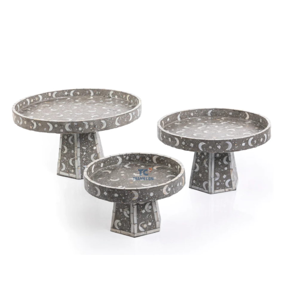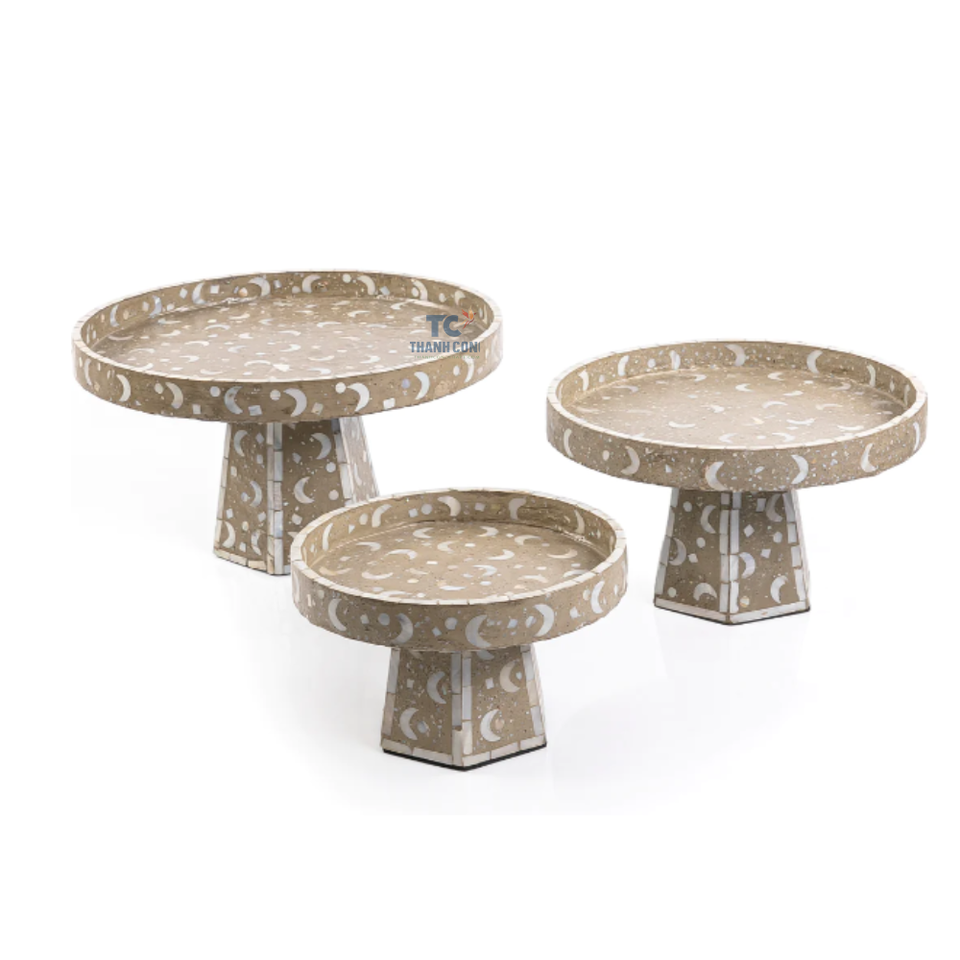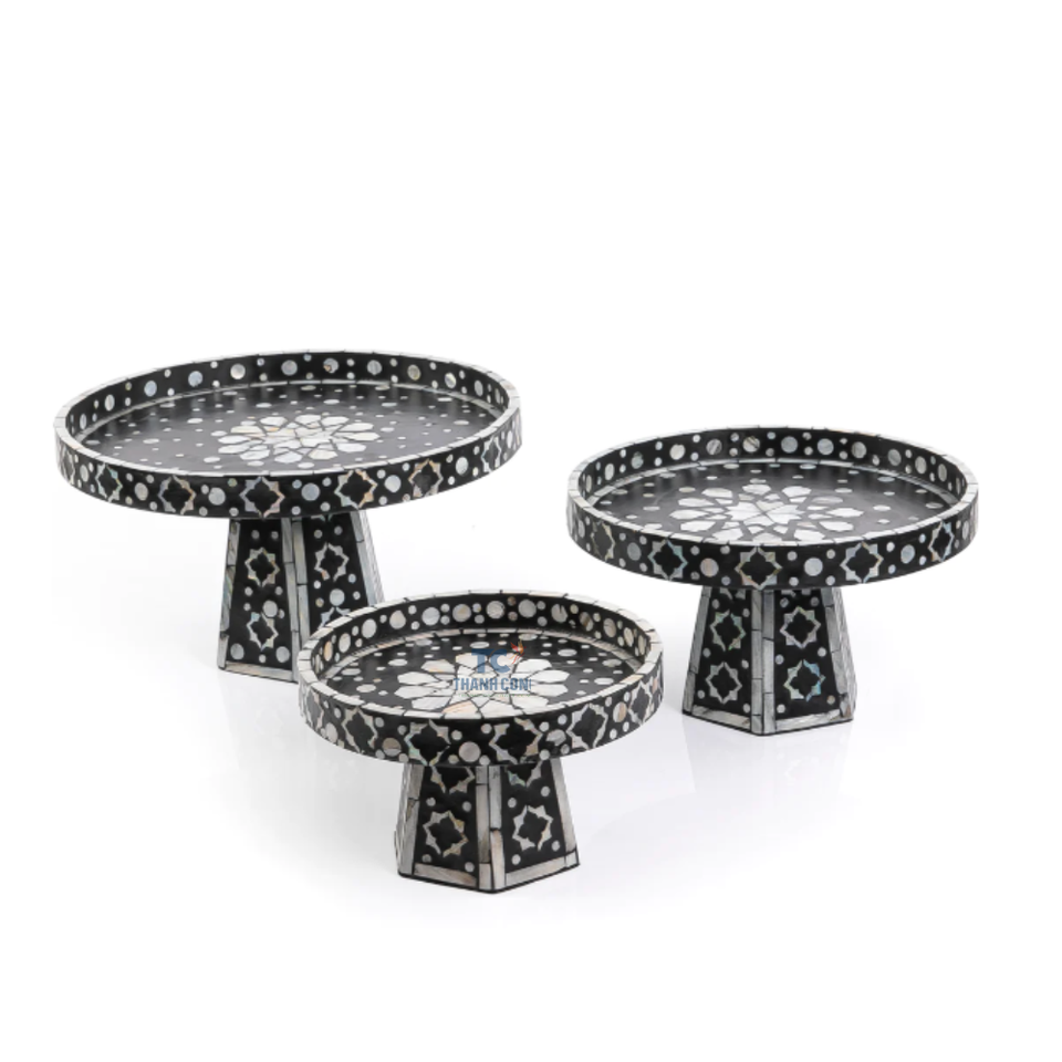Prix usine De Luxe Capiz Shell Incrustation Nacre MOP Set 3-Tray Plateaux De Service Vente Chaude Gâteau Et Chocolat Stand