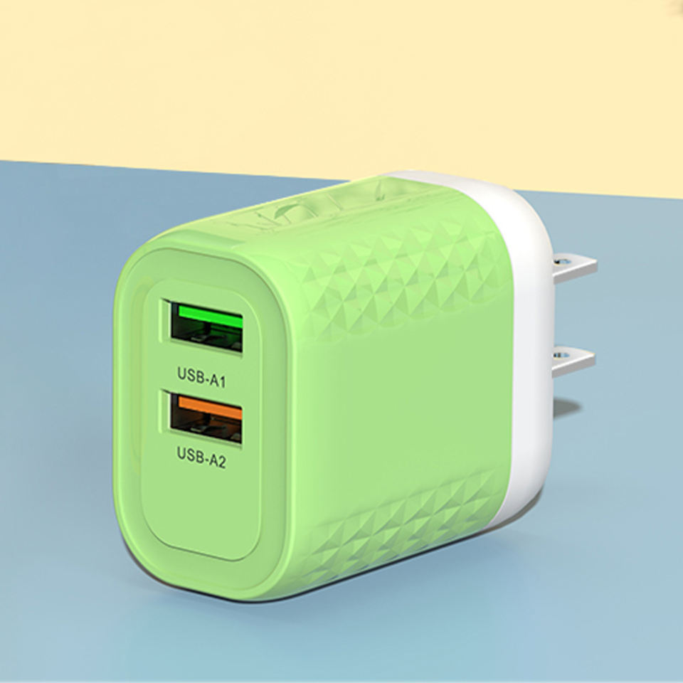 Chargeur de téléphone portable rapide 2A avec deux ports USB, design grille couleur macaron, prise EU US UK, prix d'usine