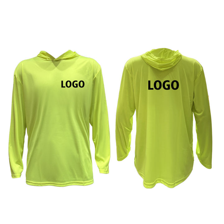 Prix d'usine Sweat à capuche réfléchissant pour hommes Chemise de travail en polyester à manches longues pour hommes avec sweat à capuche Dri Fit Chemises de construction personnalisées