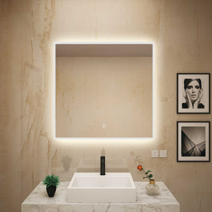 Miroir de salle de bain intelligent à LED avec Bluetooth, design graphique et affichage de l'heure, prix d'usine, style hôtel moderne